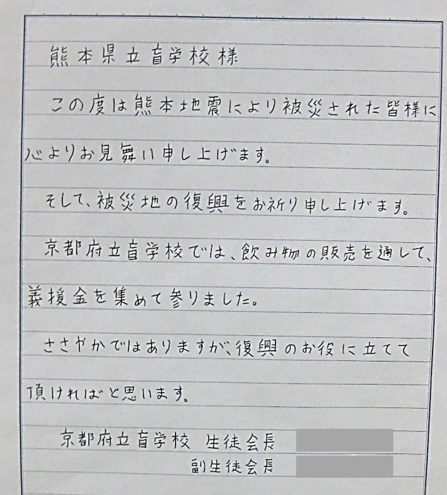 復興応援のメッセージ 熊本県立盲学校